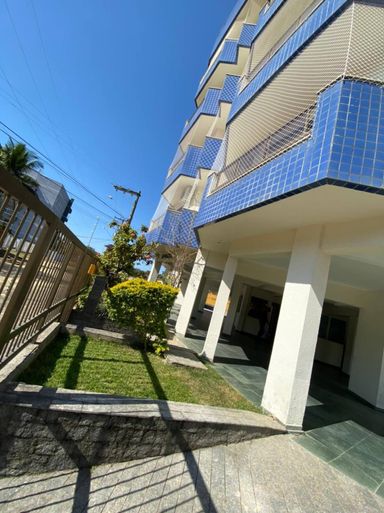 Espaçoso apartamento de 02 dormitórios, sendo uma suíte, hall de entrada, ventiladores de teto, cozinha com área de serviço, 02 salas integrada com sacada e banheiro social. Prédio com elevador, garagem coberta, salão de jogos, ducha, área de lazer com churrasqueira e sauna. Próximo a praia em 400 metros.