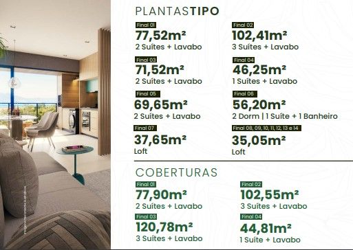 Lazer completo; piscina com vista panorâmica, área gourmet integrada. Plantas modernas; Studios a partir de R$289.170 e Apartamentos de 1, 2 e 3 dormitórios suítes.