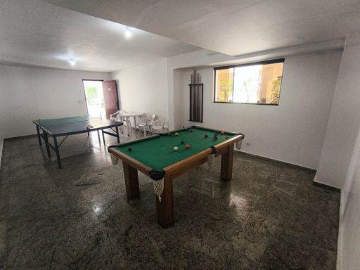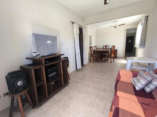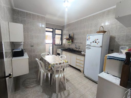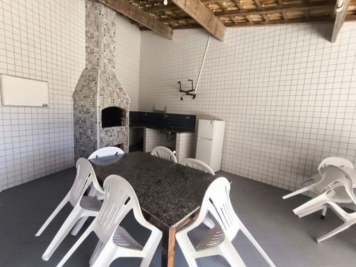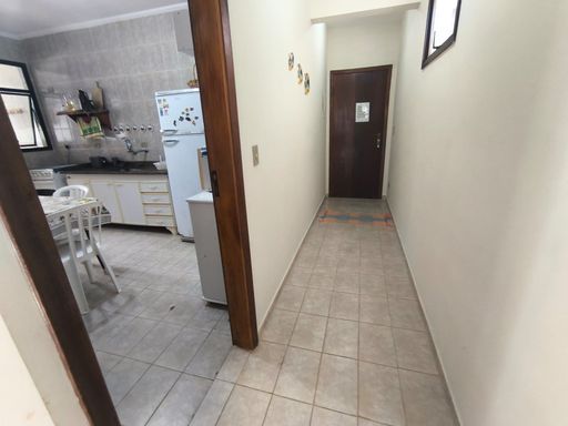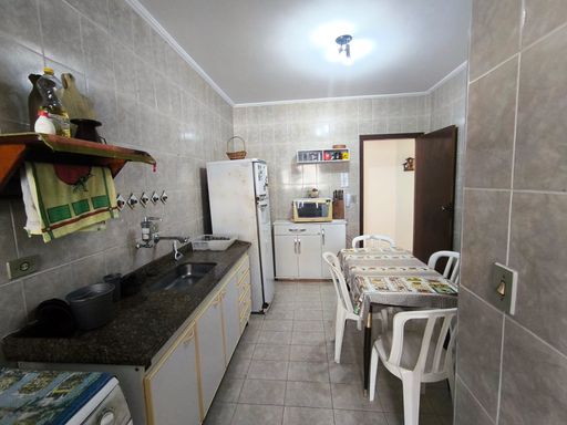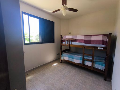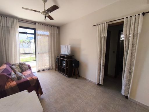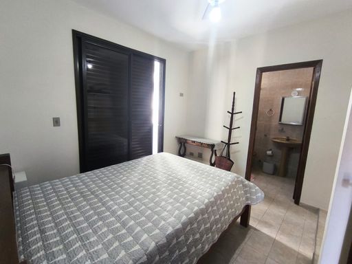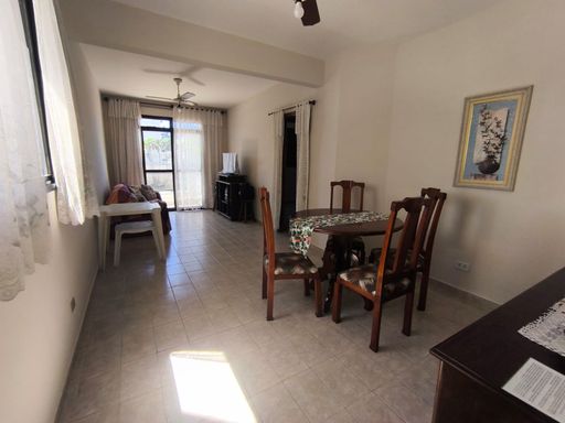 Espaçoso apartamento de 02 dormitórios, sendo uma suíte, hall de entrada, ventiladores de teto, cozinha com área de serviço, 02 salas integrada com sacada e banheiro social. Prédio com elevador, garagem coberta, salão de jogos, ducha, área de lazer com churrasqueira e sauna. Próximo a praia em 400 metros.